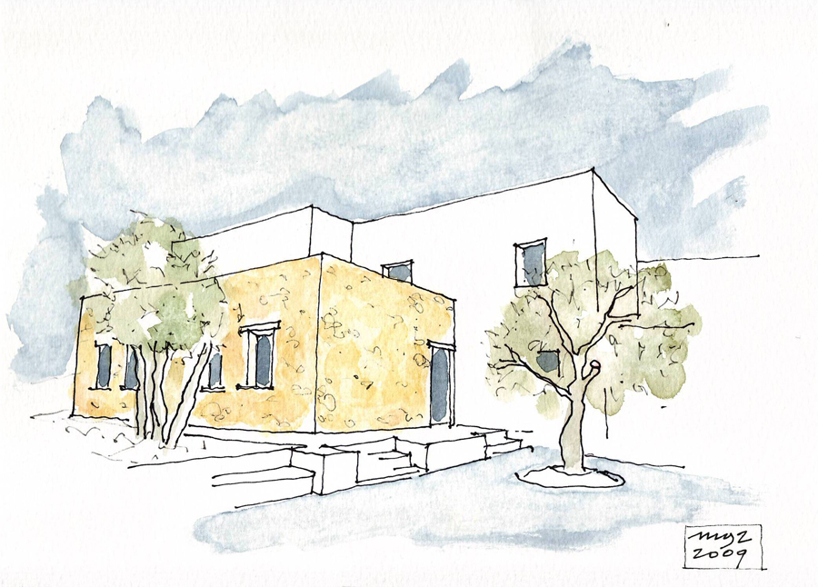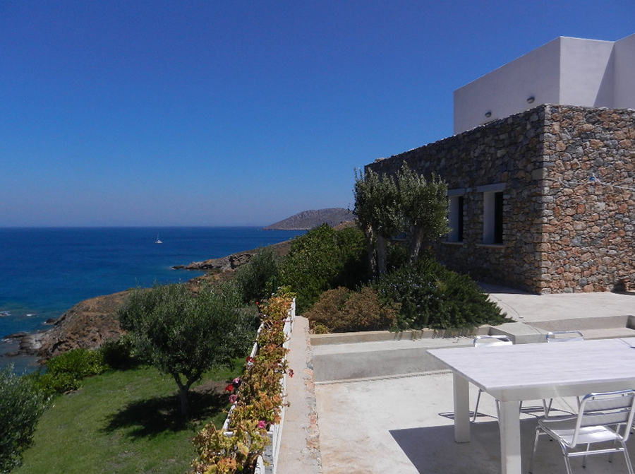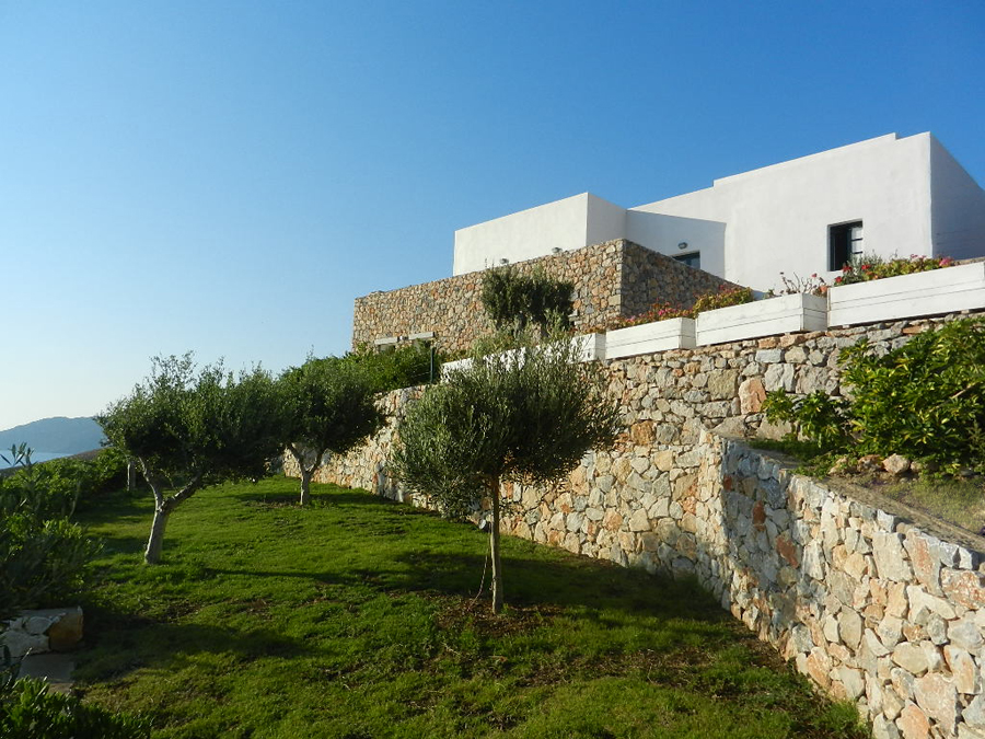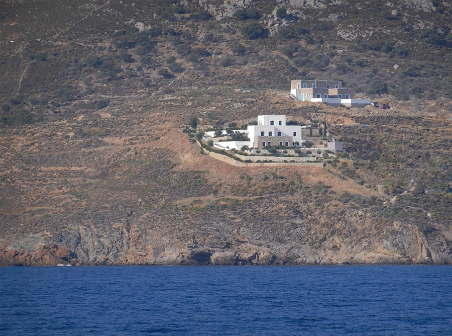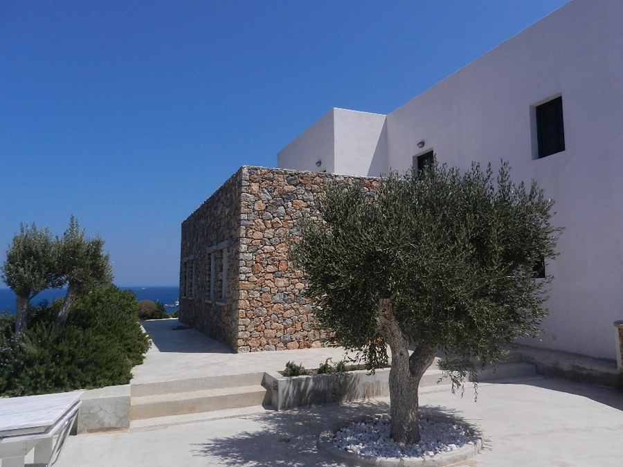 Situata a Leros, isola nell’arcipelago del Dodecaneso, la casa affaccia sul mare Egeo come fosse la prua di una barca. L’accesso alla proprietà avviene attraverso un grande giardino terrazzato con ulivi e piante tipiche del mediterraneo. L’ingresso alla zona giorno della casa si raggiunge con un percorso che la costeggia lungo il lato Sud – Est offrendo scorci suggestivi verso il mare. L’edificio è suddiviso in tre livelli; quello inferiore ospita la zona giorno con salone, cucina e servizi. Collegato al salone un ampio terrazzo con cucina all’aperto. I due livelli superiori sono dedicati alla zona notte con camere da letto e servizi. Le camere si aprono su grandi terrazzi verso il mare.