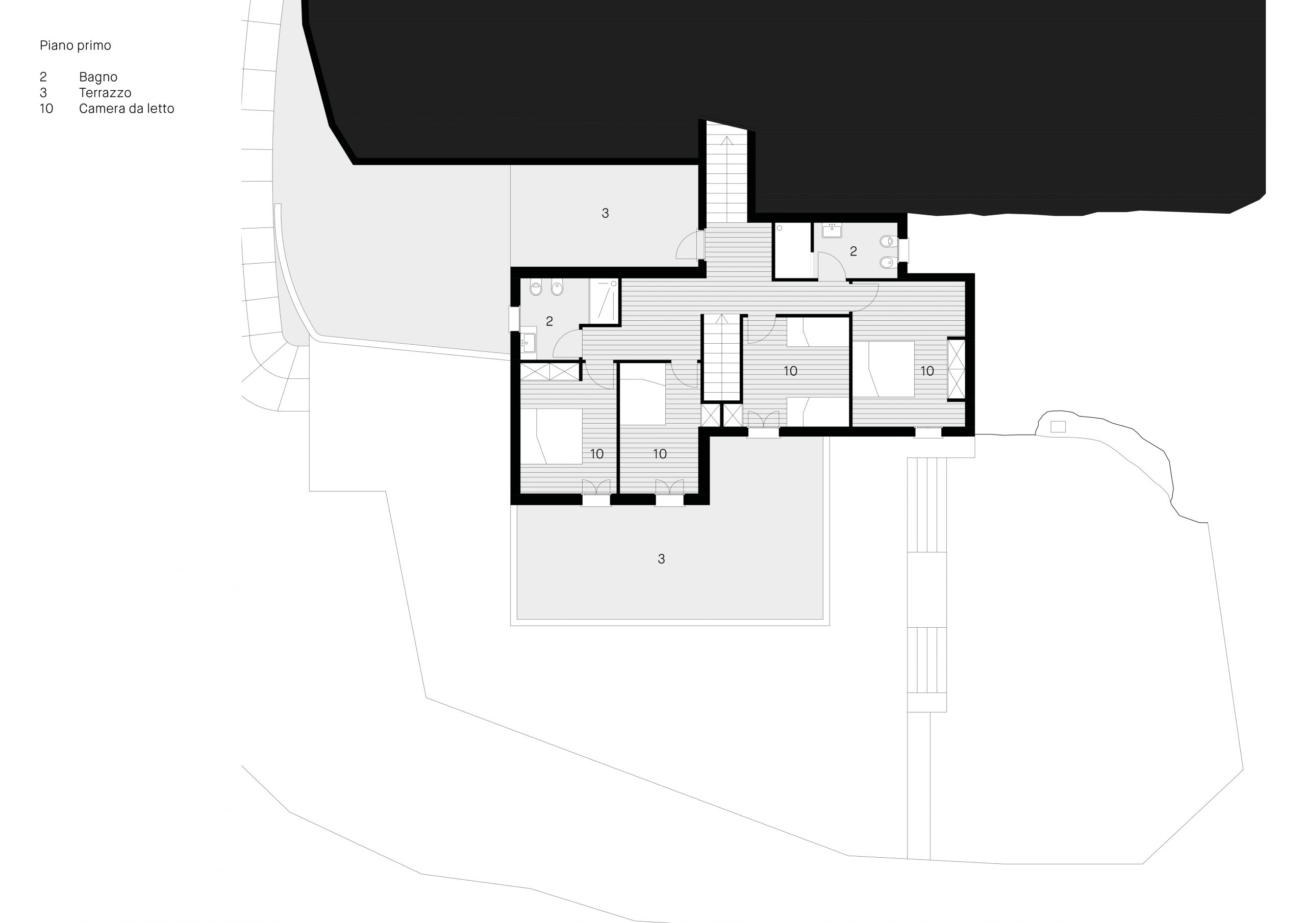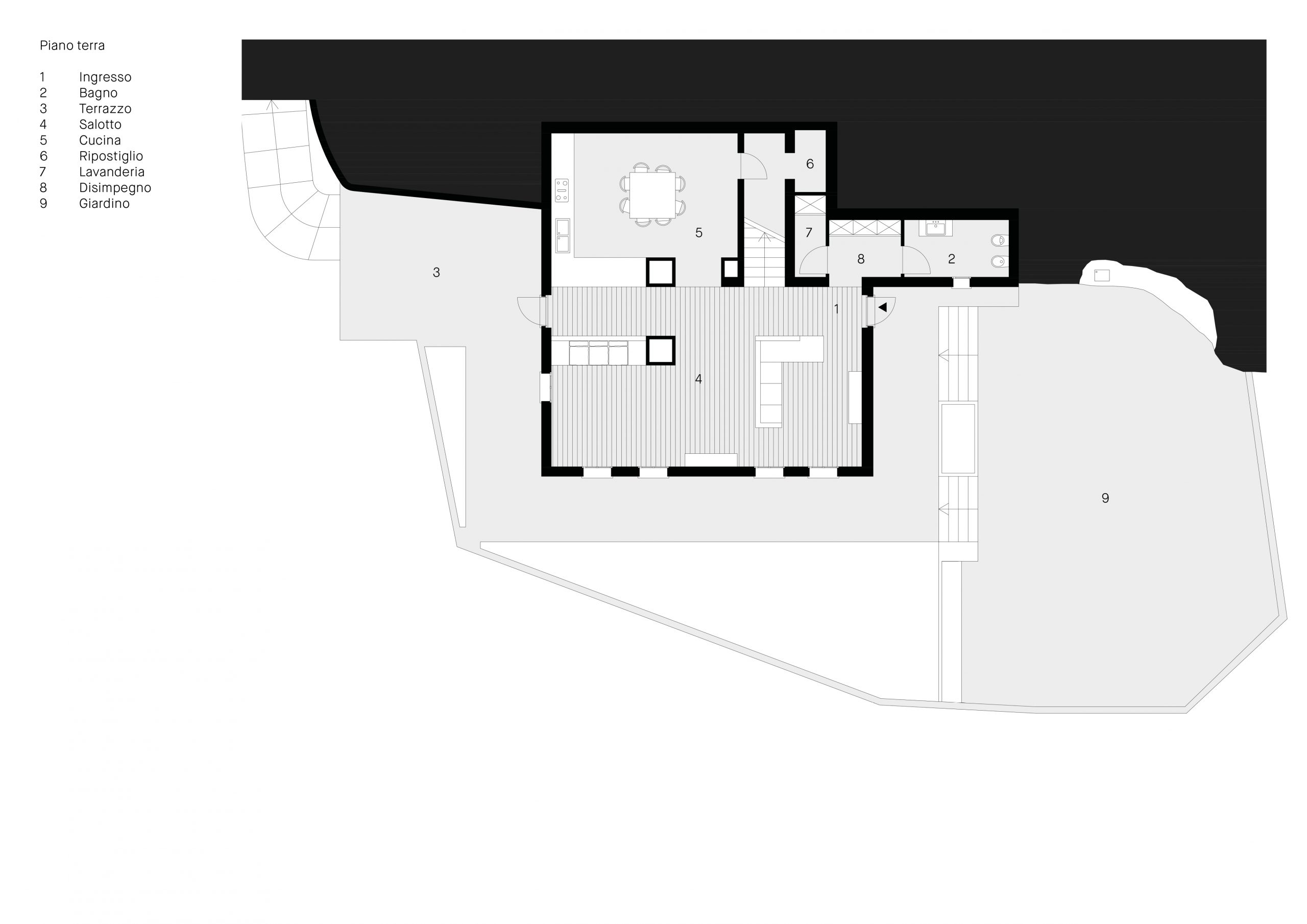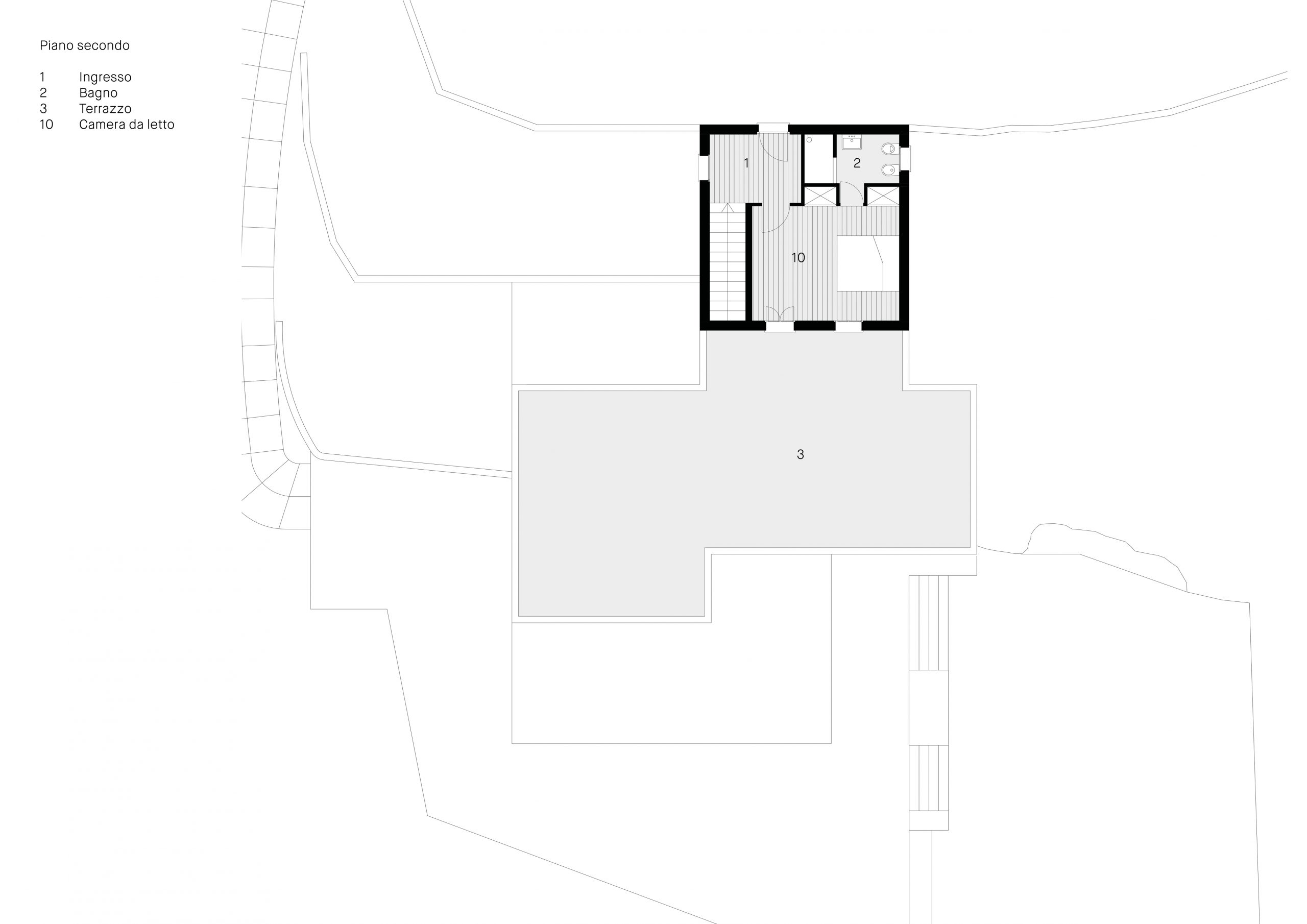 Situata a Leros, isola nell’arcipelago del Dodecaneso, la casa affaccia sul mare Egeo come fosse la prua di una barca. L’accesso alla proprietà avviene attraverso un grande giardino terrazzato con ulivi e piante tipiche del mediterraneo. L’ingresso alla zona giorno della casa si raggiunge con un percorso che la costeggia lungo il lato Sud – Est offrendo scorci suggestivi verso il mare. L’edificio è suddiviso in tre livelli; quello inferiore ospita la zona giorno con salone, cucina e servizi. Collegato al salone un ampio terrazzo con cucina all’aperto. I due livelli superiori sono dedicati alla zona notte con camere da letto e servizi. Le camere si aprono su grandi terrazzi verso il mare.