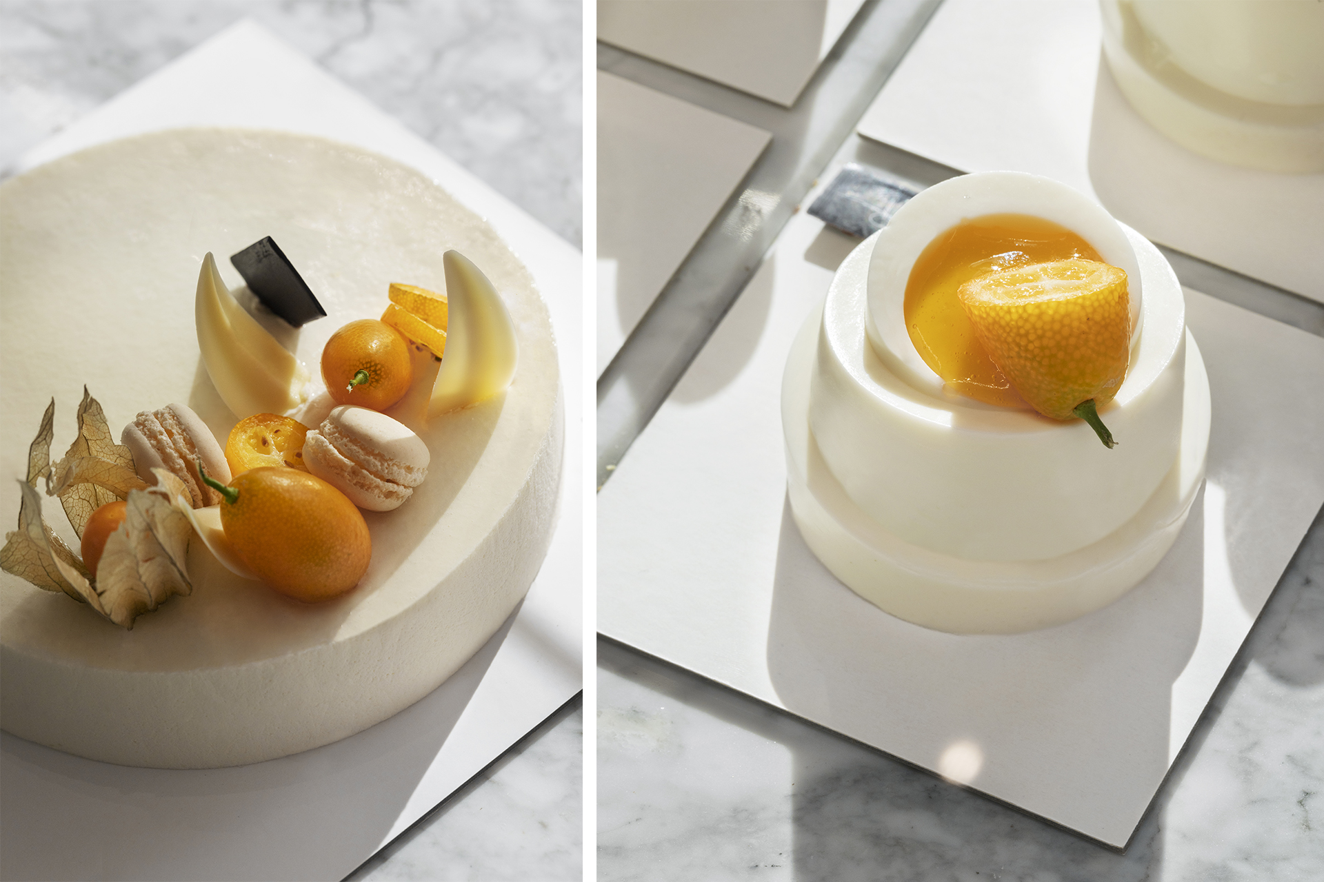 Essenza e forme elementari sono i principi generatori del progetto che traggono ispirazione dalla lettura critica delle creazioni della pasticceria. Quadrati e cerchi dialogano con la materia, disegnando il giusto equilibrio con il linguaggio visivo. Lo spazio architettonico diventa così l’occasione per investigare temi progettuali dall’allure metafisico. Le forme pure e le cromie eleganti si accostano a materiali classici interpretati in modo contemporaneo.